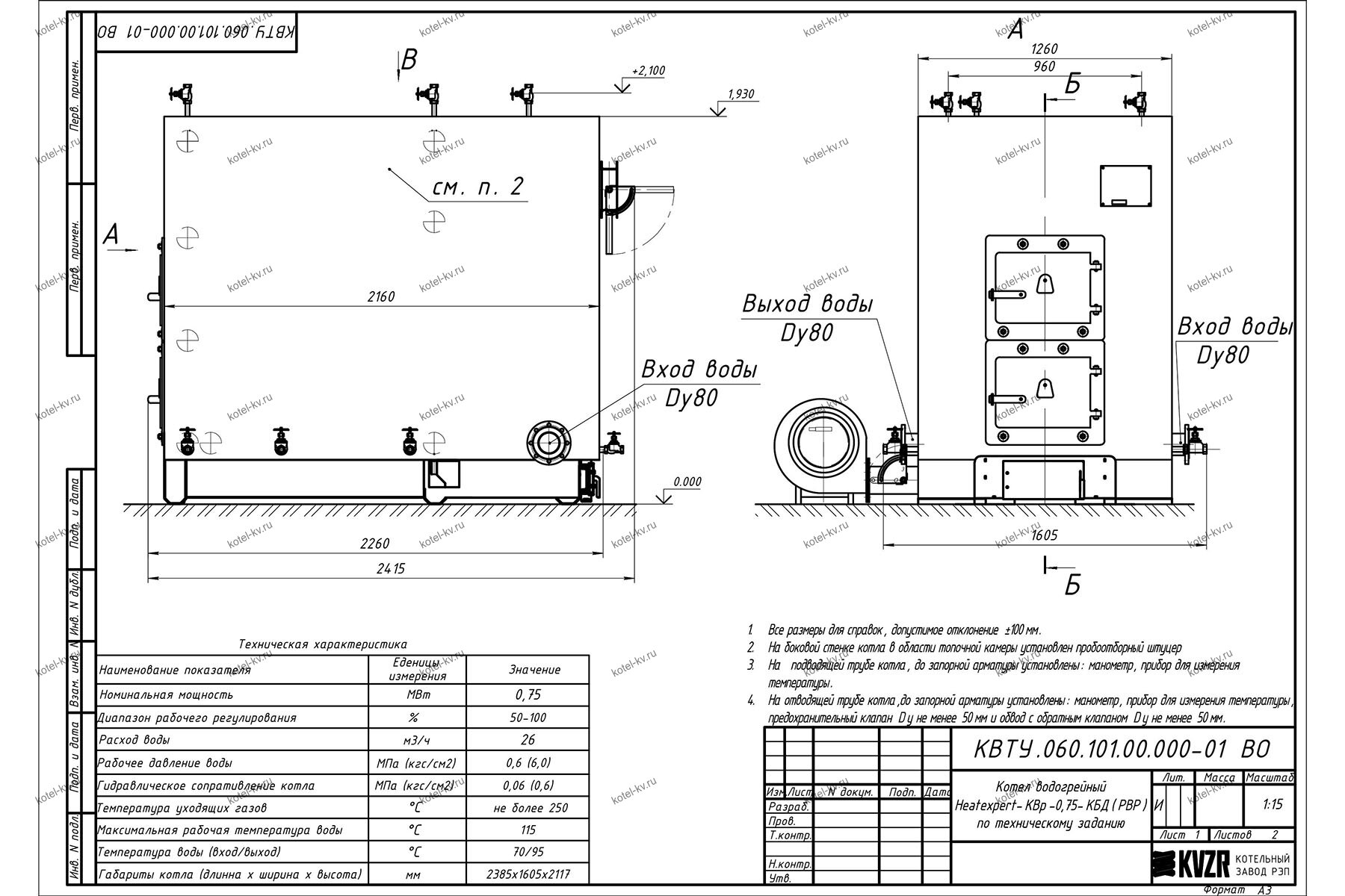 Конструкция котла КВр 0.75 МВт